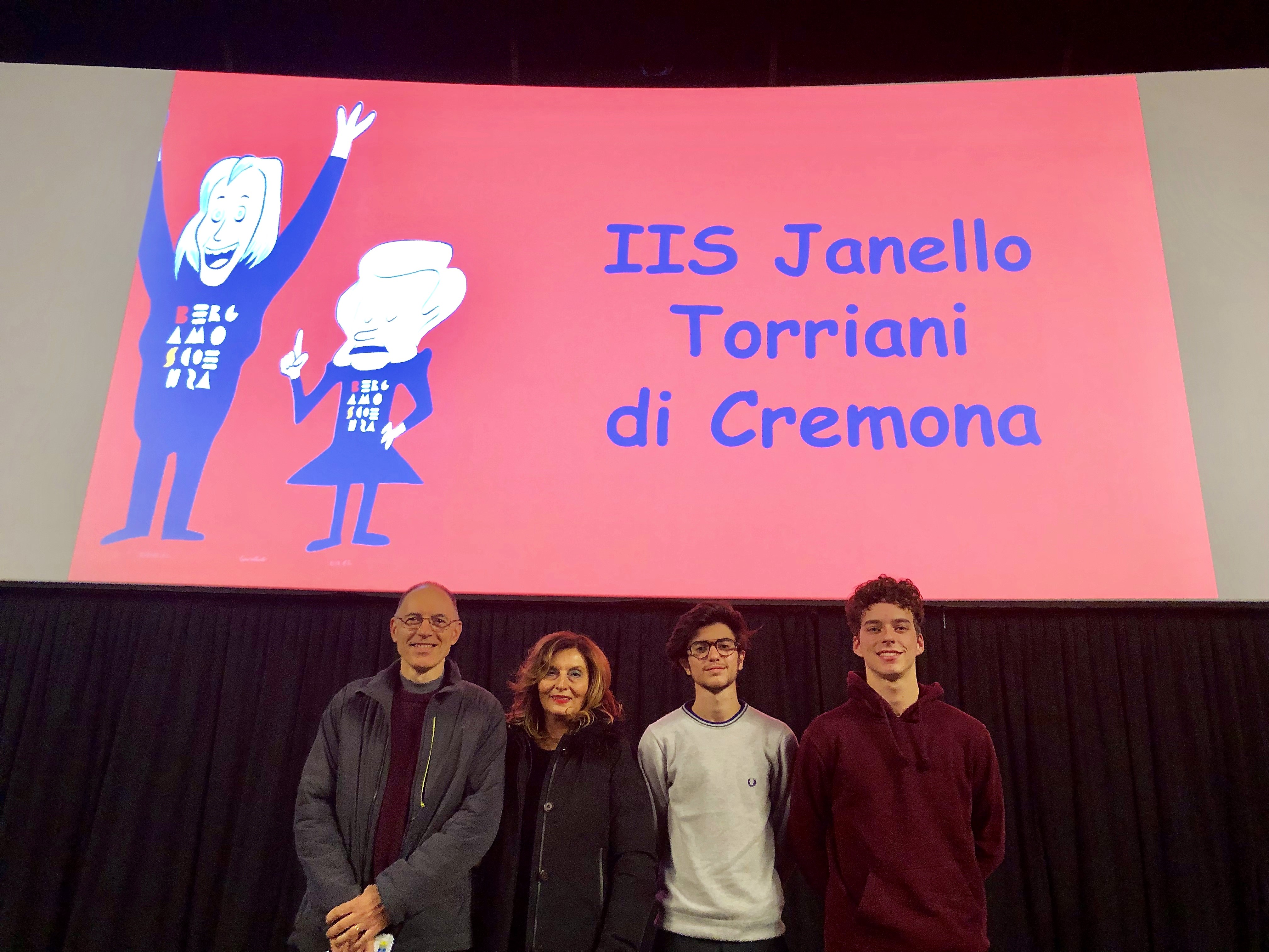 Per l’IIS Torriani erano presenti: gli studenti Marcello Monfardini (V A CHI) e Pietro Bissolati (V A LSA), in rappresentanza dei compagni; la prof.ssa Elena Lanfredi e il prof. Evro Bissolati, coordinatori dei due laboratori premiati; il prof. Michele Torresani, delegato della Dirigente scolastica.