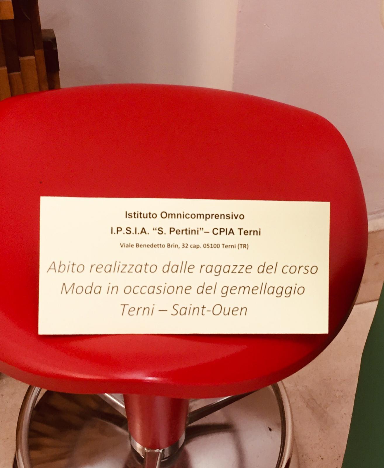 „Nel segno della continuità, della tradizione e naturalmente della creatività. Le allieve dell’Istituto Professionale Sandro Pertini, iscritte al corso ‘Moda Made in Italy’ proseguono a sfornare le loro opere a favore della comunità. L’ultimo, solo in ordine temporale, è l’abito in esposizione alla biblioteca comunale di Terni, visibile fino al 19 maggio. Un omaggio a “Gemellarte” ossia il gemellaggio tra le città di Terni e Saint-Ouen, ed alla vicinanza tra l'Italia e la Francia, in collaborazione con l'assessorato alla scuola. Una realtà formativa quella dell'IPSIA che è molto attenta alla preparazione tecnica dei propri allievi e allieve. Attraverso gli stage, presso le migliori aziende del territorio, prepara in modo adeguato all'inserimento nel mondo del lavoro, o in diversi casi per il proseguimento degli studi in accademie d'arte o Università tecniche. Oltre all’opera in esposizione anche ‘Il Re e la Regina del Cantamaggio’ sono il prodotto della creatività delle ragazze, abiti esibiti durante la recente sfilata dei carri.